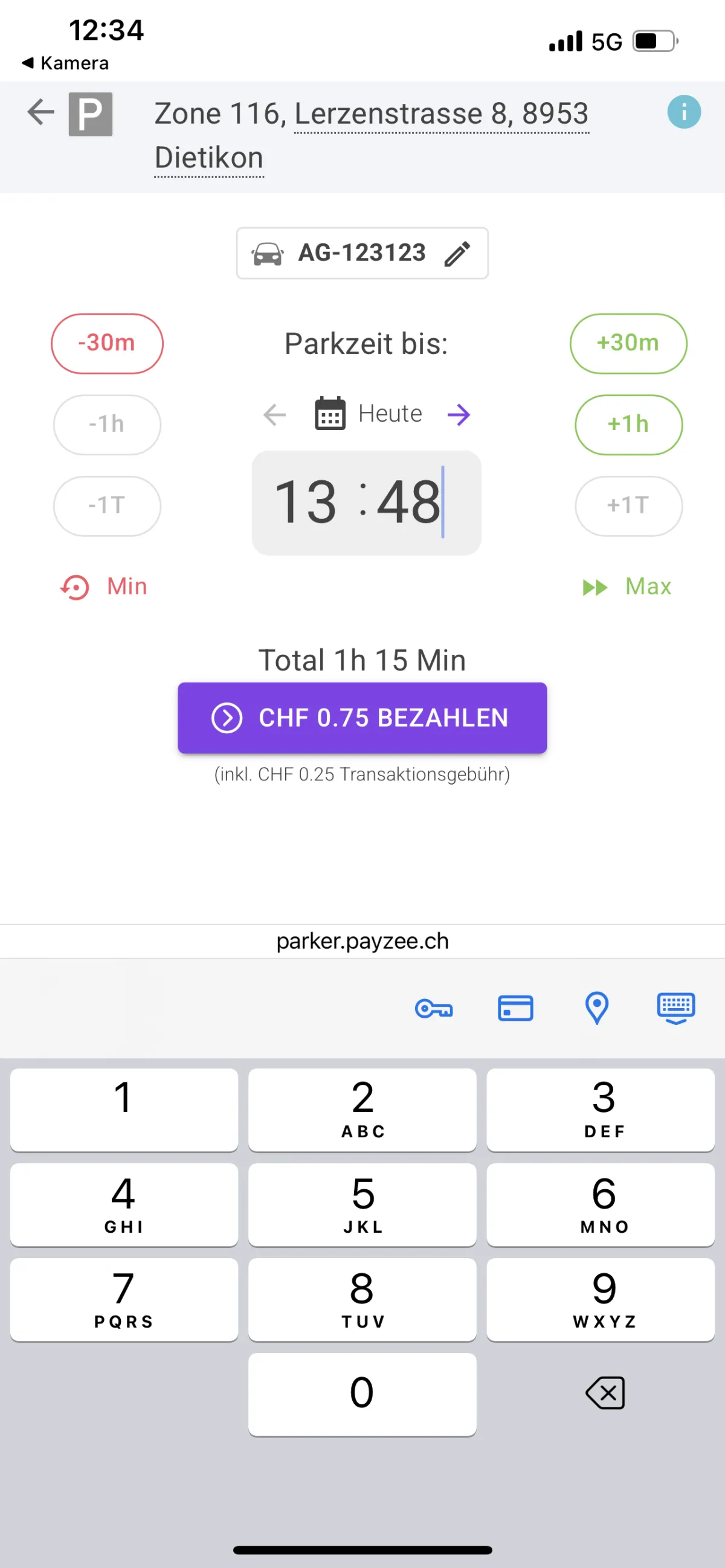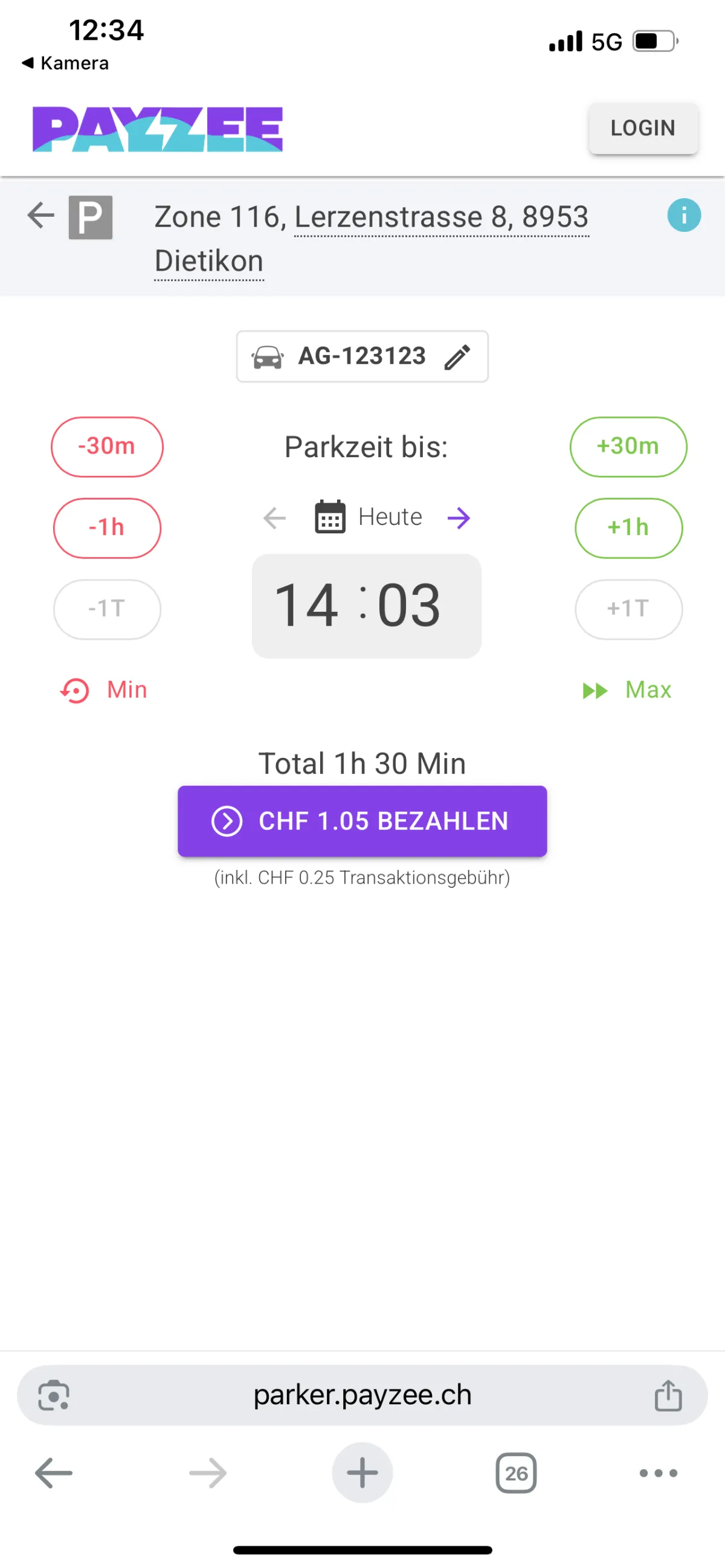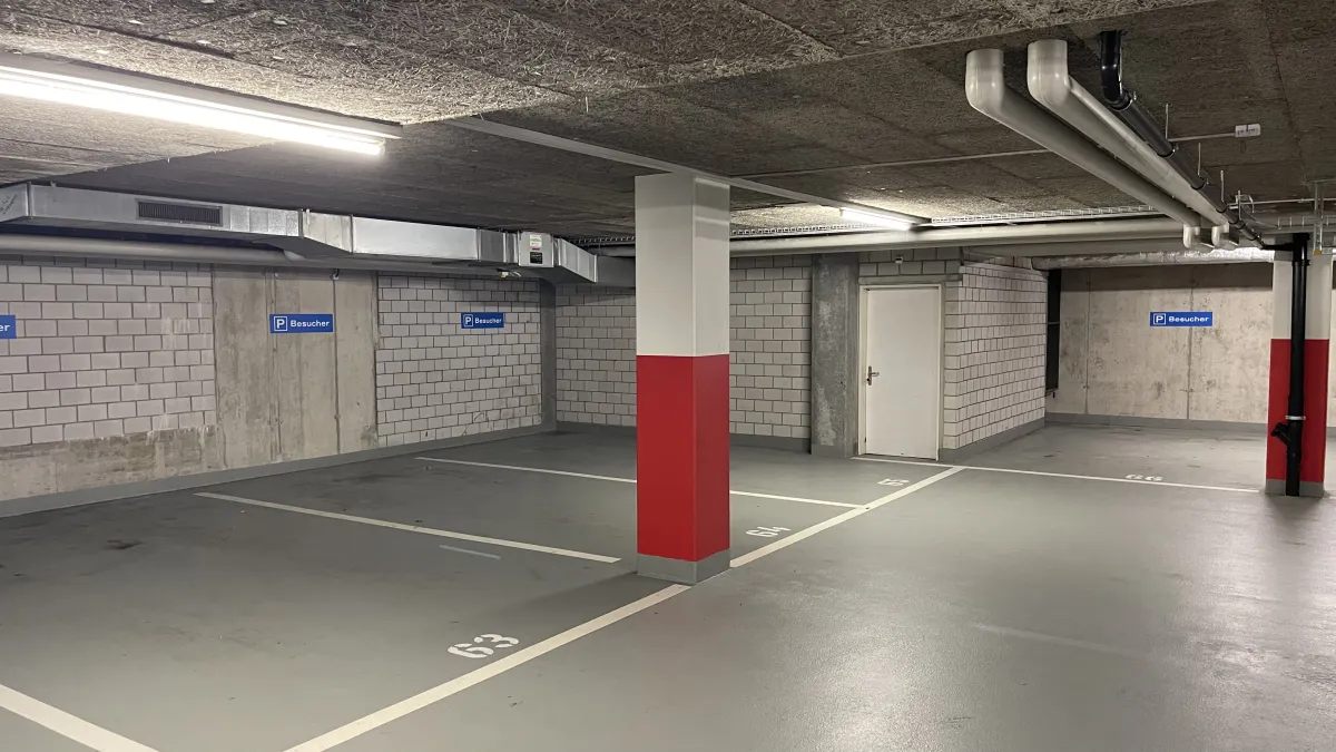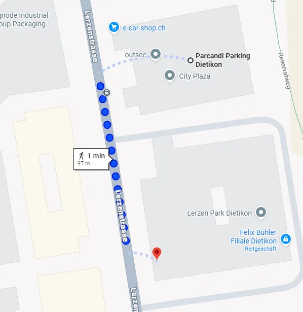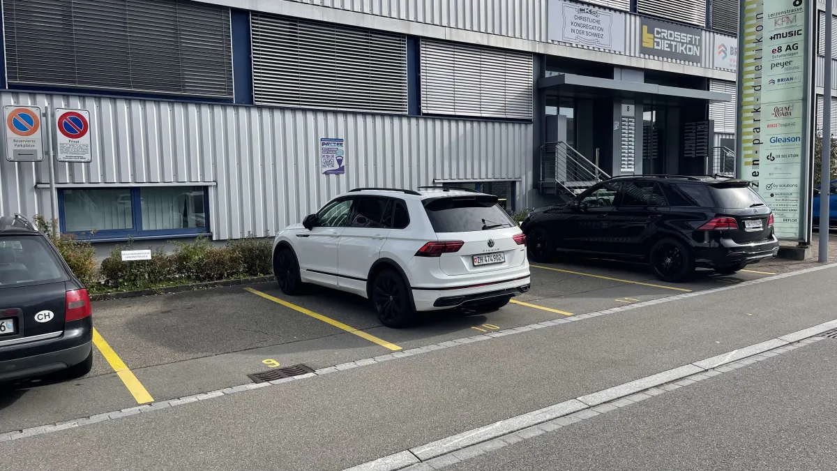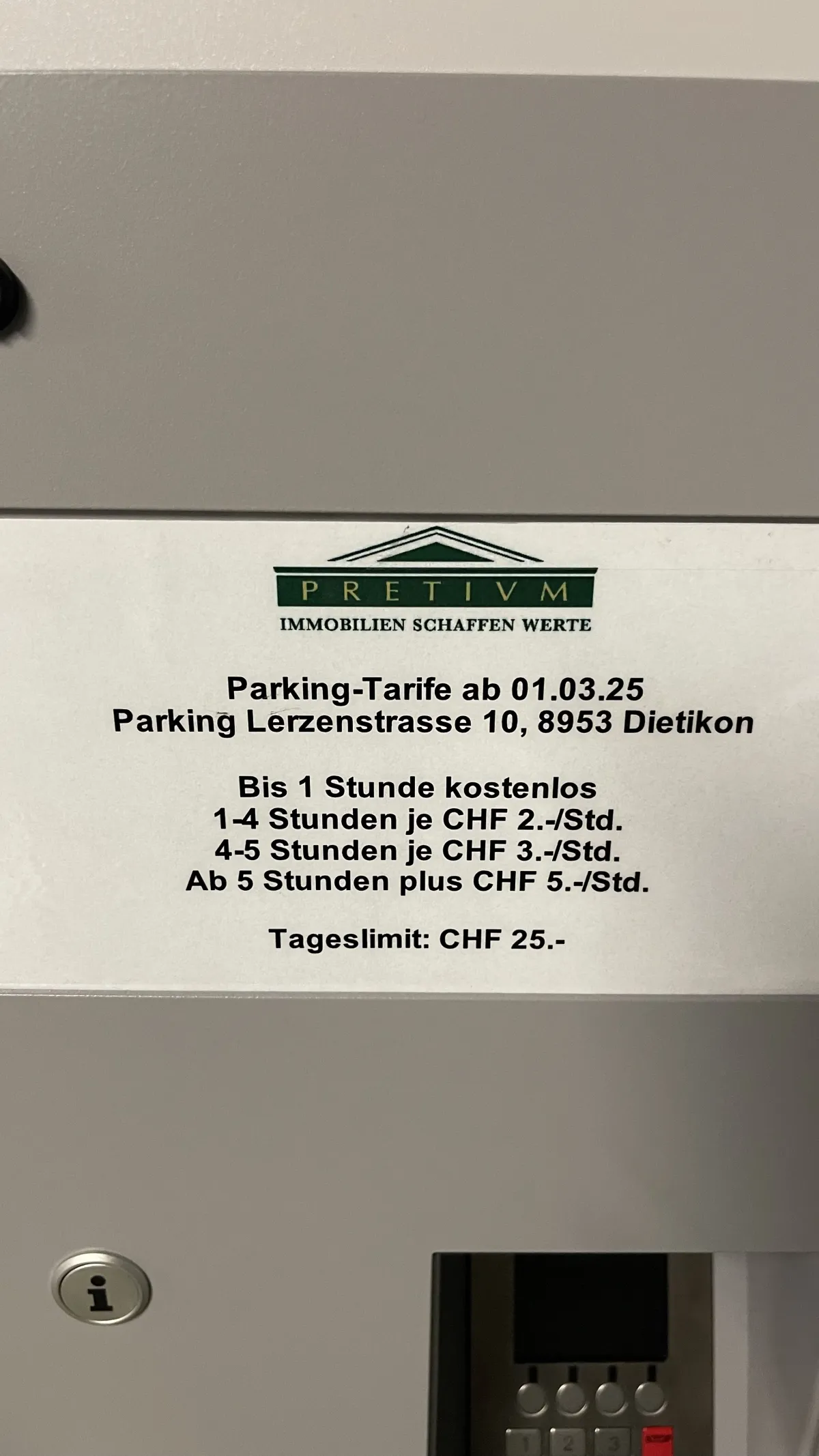Parcandi Parking Dietikon. Links neben dem Hauptgebäude.
